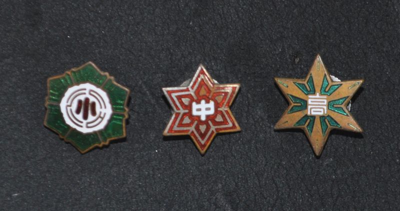 左から沼ノ沢小学校・向陽中学校・夕張北高校の徽章(襟章)です。